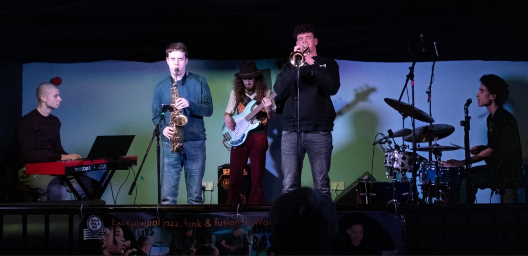 Louis Hamilton-Foad (drums), Ben Carter (sax), Gabriel Amann (trumpet), Alex Smith (keys), Sam Sharpe (bass)